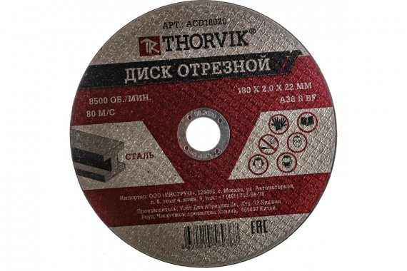 Thorvik ACD18020 Диск отрезной абразивный 180х2.0х22.2 мм