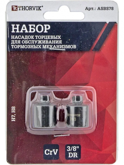 - Набор насадок торцевых для обслуживания тормозных механизмов 3/8"DR, Н7, Н8, 2 предмета, Thorvik ASBS78 - 1 шт.