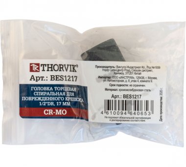Технические характеристики спиральной торцевой головки для поврежденного крепежа THORVIK 53219