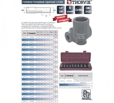 Технические характеристики набора ударных торцевых головок THORVIK 53463