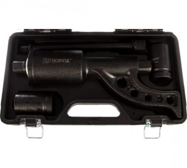 Ручной механический удлиненный гайковерт 3800 Нм и головки торцевые 32 мм, 33 мм Thorvik LSW3 52754 удобен в использовании за счет высокого передаточного отношения. Это позволяет с меньшими усилиями отвернуть гайки.