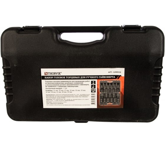 Технические характеристики набора торцевых головок для ручного гайковерта THORVIK 52774