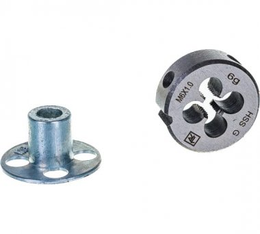 Круглая ручная плашка с направляющей в наборе М6х1.0, HSS, Ф25х9 мм Thorvik D-DRIVE MDG61 52862 удобна для нарезания наружной резьбы.