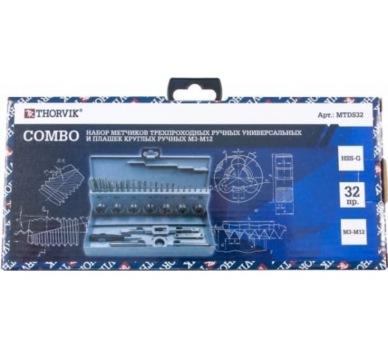 Набор трехпроходных метчиков и круглых плашек THORVIK COMBO М3-М12, HSS-G, 32 предмета MTDS32 52887 представлен в оптимальной комплектации с популярными типоразмерами моделей. Поставляется в железном кейсе. Это обеспечивает надежное хранение и защищает инструмент от механических повреждений.