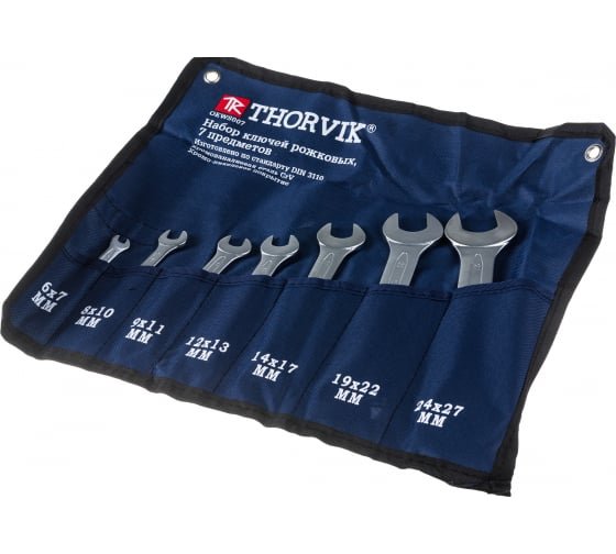 Thorvik OEWS007 Набор ключей гаечных рожковых в сумке, 6-27 мм