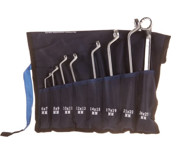 ORWS008 Набор ключей гаечных накидных изогнутых 75° в сумке, 6-27 мм, 8 предметов
