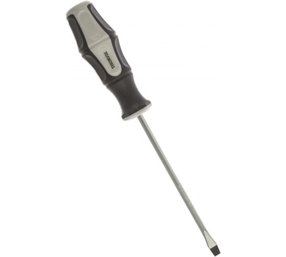 Шлицевая отвертка THORVIK SDL5125 SL5х125 мм 52136 состоит из стержня и двухкомпонентной рукоятки. Ручной инструмент предназначен для обслуживания крепежа с прямым шлицем. Рабочая часть выполнена из хромованадиевой стали и обладает намагниченным наконечником.