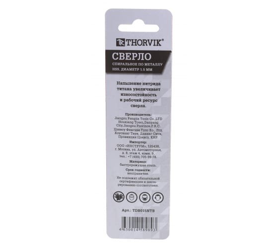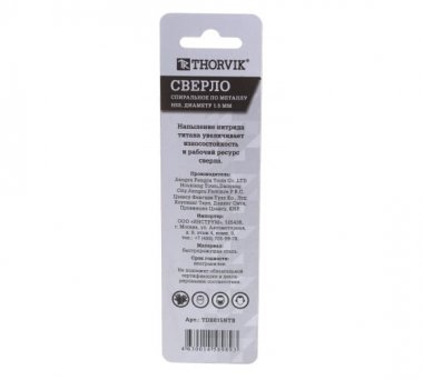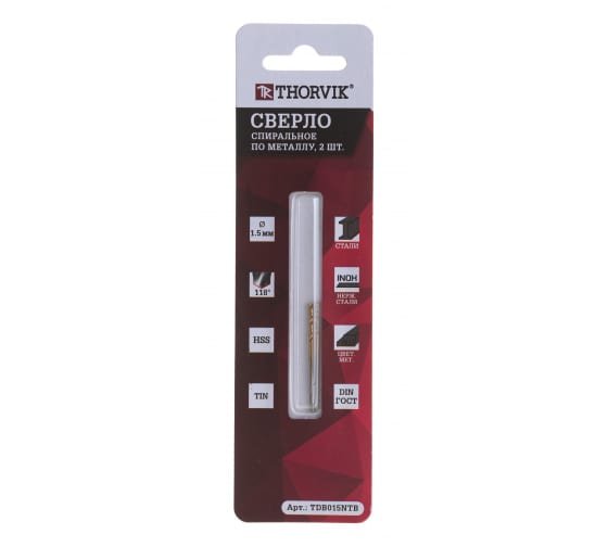 Thorvik TDB015NTB Сверло спиральное по металлу HSS TiN d1.5 мм