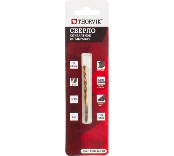 Thorvik TDB032NTB Сверло спиральное по металлу HSS TiN d3.2 мм