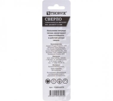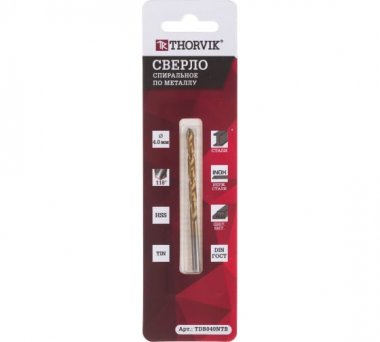 Thorvik TDB040NTB Сверло спиральное по металлу HSS TiN d4.0 мм