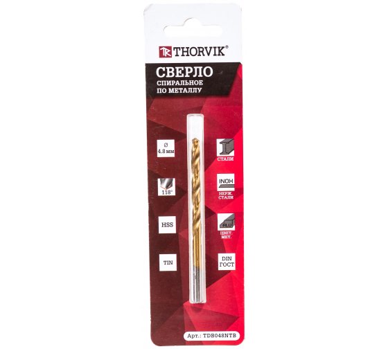Thorvik TDB048NTB Сверло спиральное по металлу HSS TiN d4.8 мм