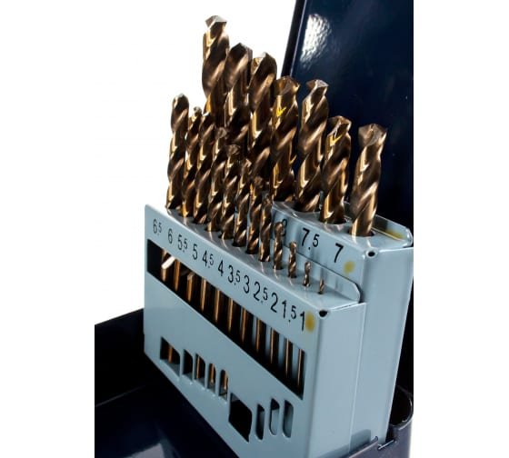 TDBS19K5 Набор спиральных сверл по металлу HSS Co в металлическом кейсе, d1.0-10.0 мм, 19 предметов